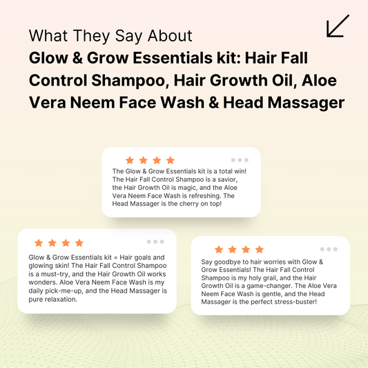 Glow & Grow Essentials kit: Hair Fall Control Shampoo, Hair Growth Oil, Aloe Vera Neem Face Wash & Head Massager