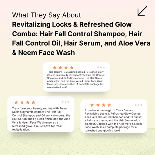 Revitalizing Locks & Refreshed Glow Combo: Hair Fall Control Shampoo, Hair Fall Control Oil, Hair Serum, and Aloe Vera & Neem Face Wash.