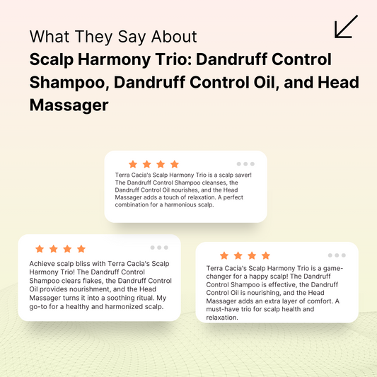 Scalp Harmony Trio: Dandruff Control Shampoo, Dandruff Control Oil, and Head Massager