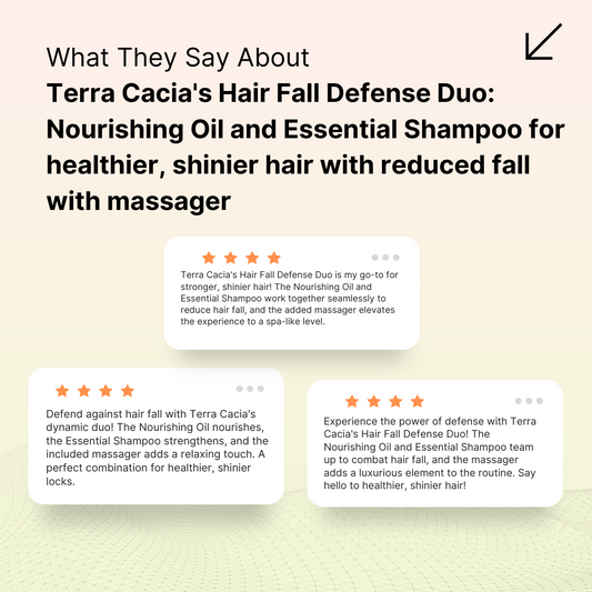 Terra Cacia's Hair Fall Defense Duo: Nourishing Oil and Essential Shampoo for healthier, shinier hair with reduced fall with massager